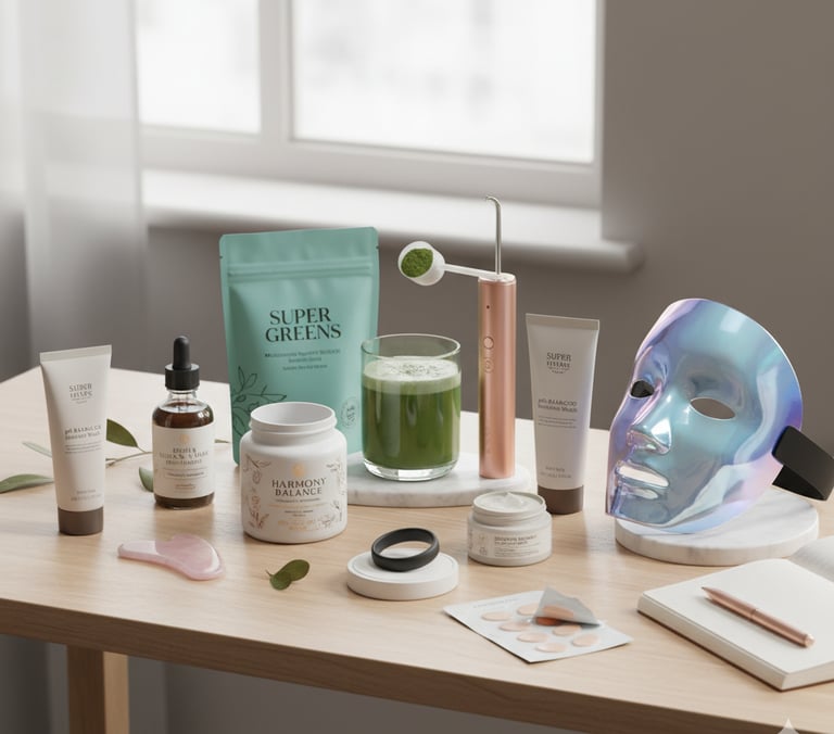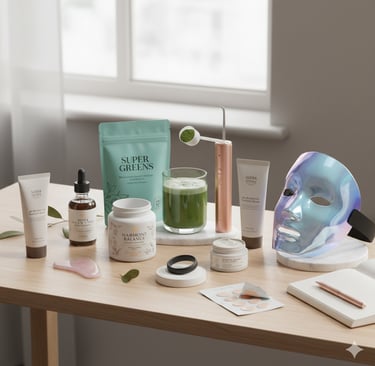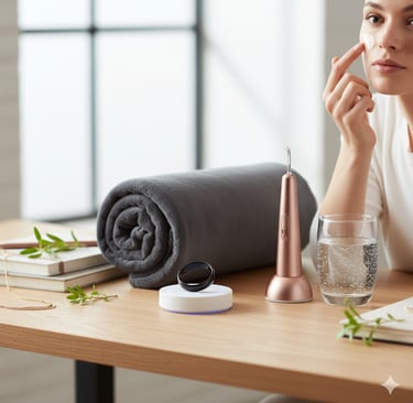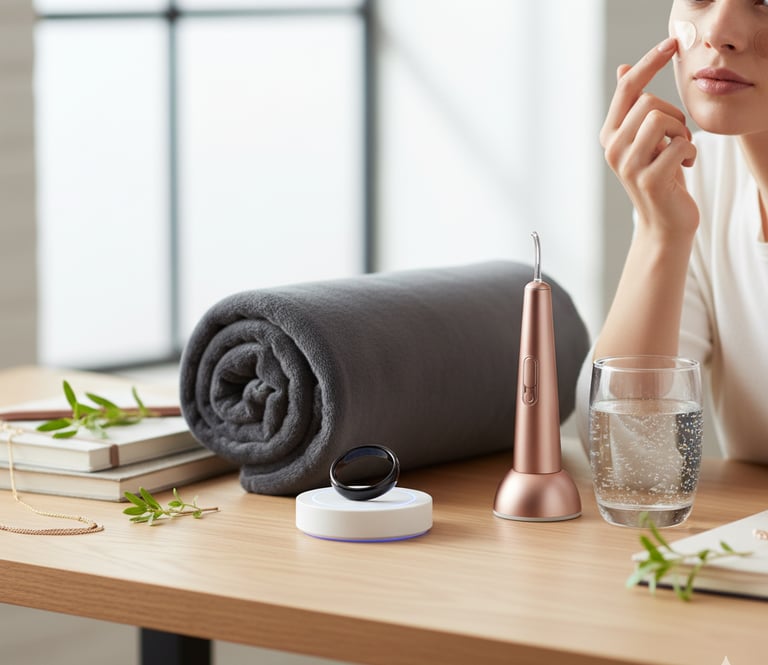 At-Home Aesthetic/Skincare Devices: Tools like LED masks and high-tech gua sha/ice rollers for reducing inflammation and boosting skin health.